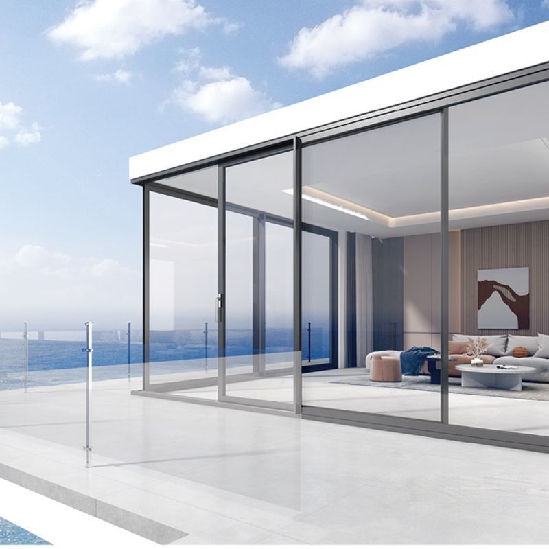 สลัดสามรางเคลื่อนไหวเสร็จ สะพานหัก ประตูสไลด์อลูมิเนียมสําหรับวิลล่าครอบครัว